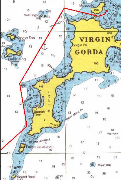 the SALT ISLAND PASSAGE. Between BLONDE ROCK and SALT ISLAND. We sailed all the way to THE BLUFF on BEEF ISLAND then