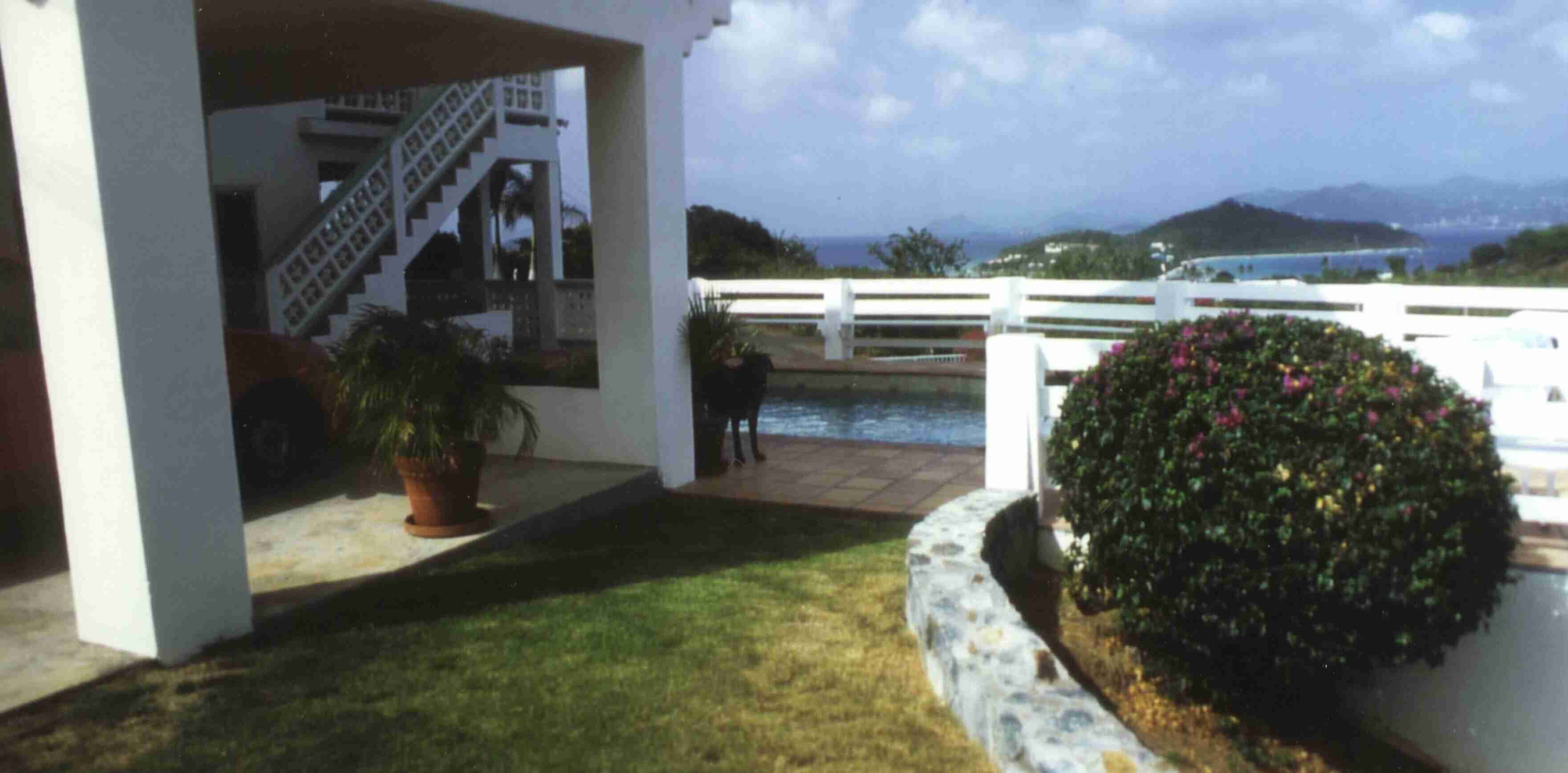 Max standing in the shadows ... welcoming us to a cool swim on the Terrace with Cabrita Point and St. John in the